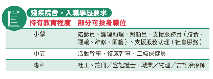 以殘疾院舍工作為例,東華三院訓練主任黃瑋恒形容這是一份助人自助、充滿意義的職業。「院舍員工不僅協助服務使用者處理日常起居,更透過園藝治療、藝術創作及社交活動,幫助他們建立自信和生活技能。」她補充,面對不同類型的智障或身體障礙人士,員工的溝通技巧與觀察力至關重要。